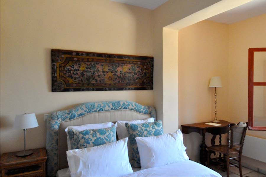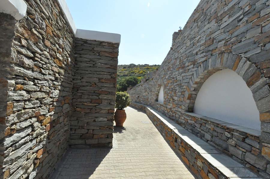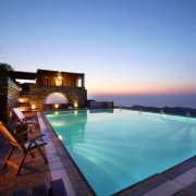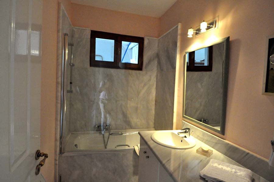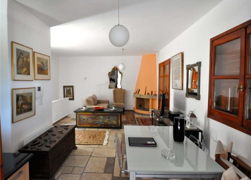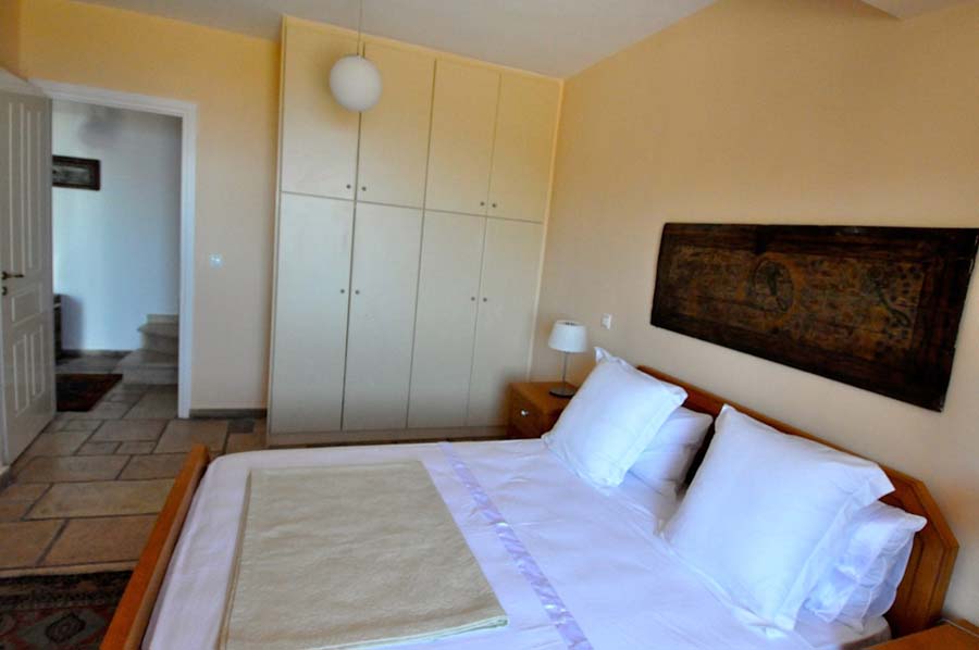 Villa 6 Villa Sleeps four, in bi level stone floor house adorned with oriental rugs and art objects.Engravings and original art works by Stella Zervos.Marble staircase with dimmed lighting, fully equipped kitchen, Italian glass dinning table.Marble table on the balcony for dinning. view all Villas